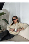 Kadın Bisiklet Yaka Gold Düğme Detaylı Havlu Kumaş Hırka  Krem