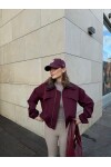 Kadın Bordo Marka Model Çift Kadife Yaka Bomber Ceket