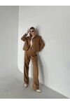 Kadın Camel Renk Süet Ceket Palazzo Pantolon İkili Takım