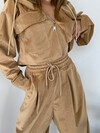 Kadın Fitilli Cepli Lastikli Yüksek Bel Kapüşonlu Takım Kiremit