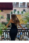 Kadın Önü Metal Aksesuarlı Straplez Triko Elbise  Siyah