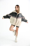 Kadın Oversize Yarım Deri Kapitoneli Peluş Mont Krem