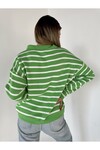 Kadın Polo Yaka Çizgili Standart Beden Triko Kazak  Yeşil