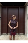 Kadın Siyah Drape Detaylı Gizli Fermuarlı Deri Elbise