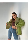 Kadın Yeşil İçi Ful Kürklü İthal Deri Balon Kol Mont Yeşil